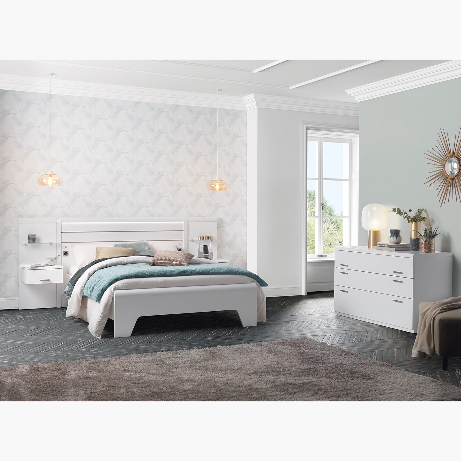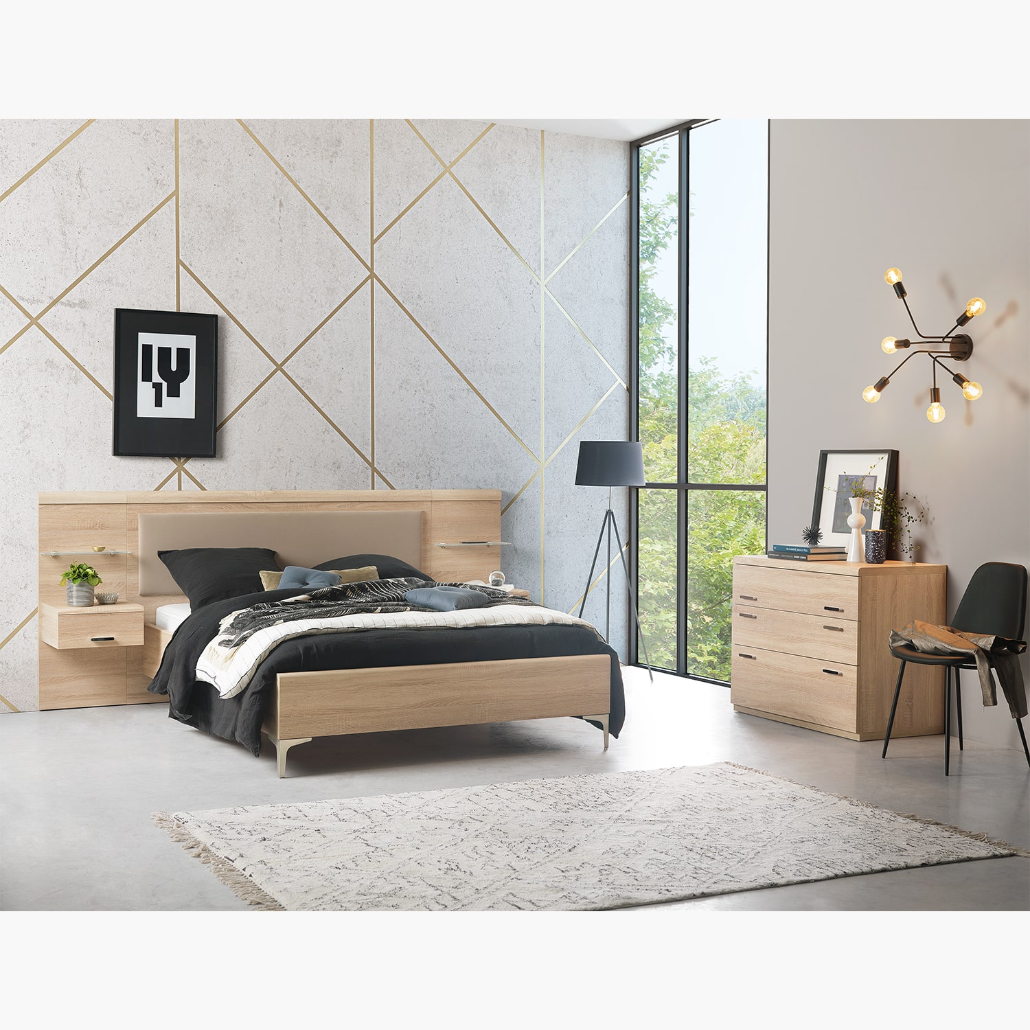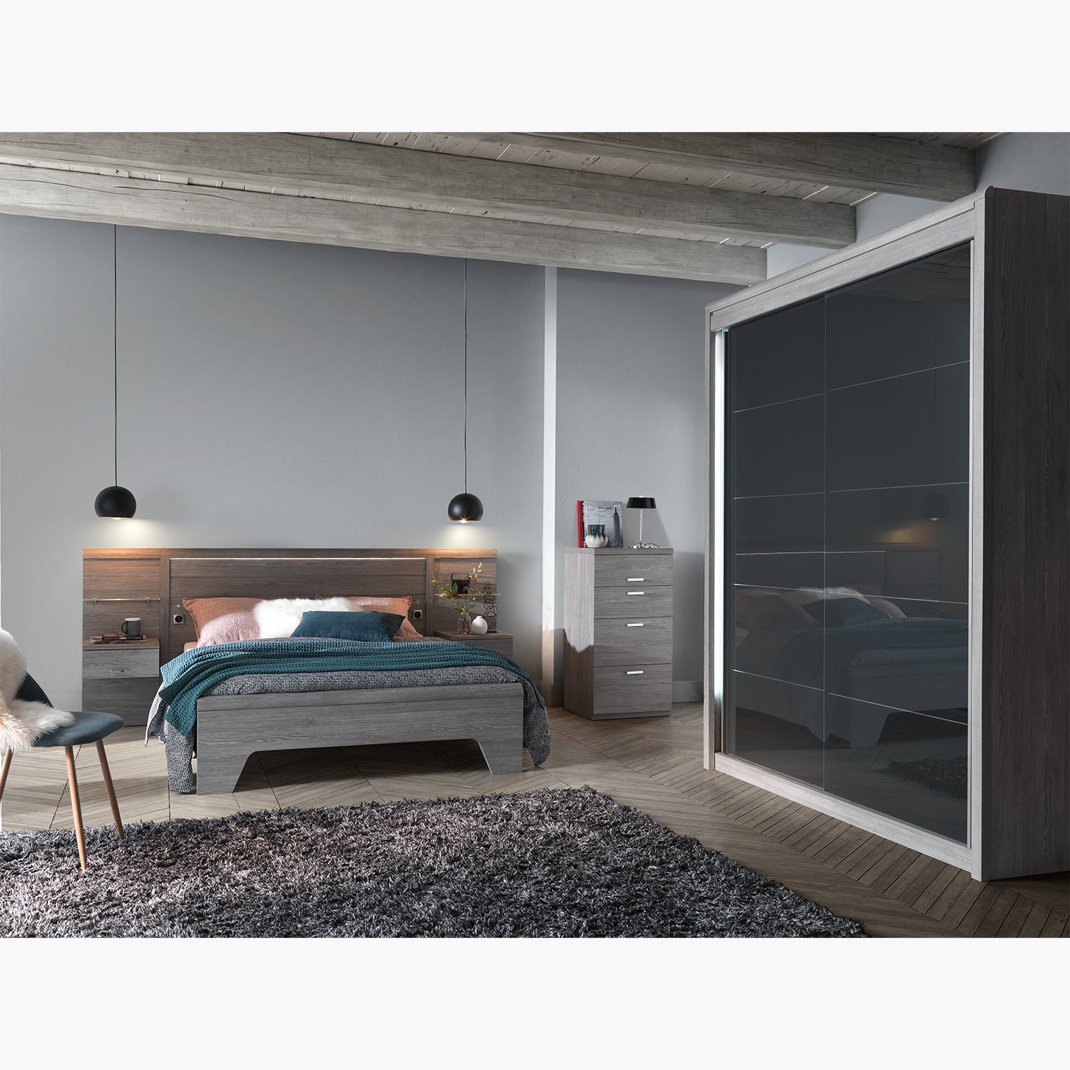 Dans la même collection : lits, chevets, commode, pantalonnière, semainier, armoires de rangement personnalisables, à portes battantes ou coulissantes, compositions d’angle, pont de lit. Choix de dimensions et de finitions.