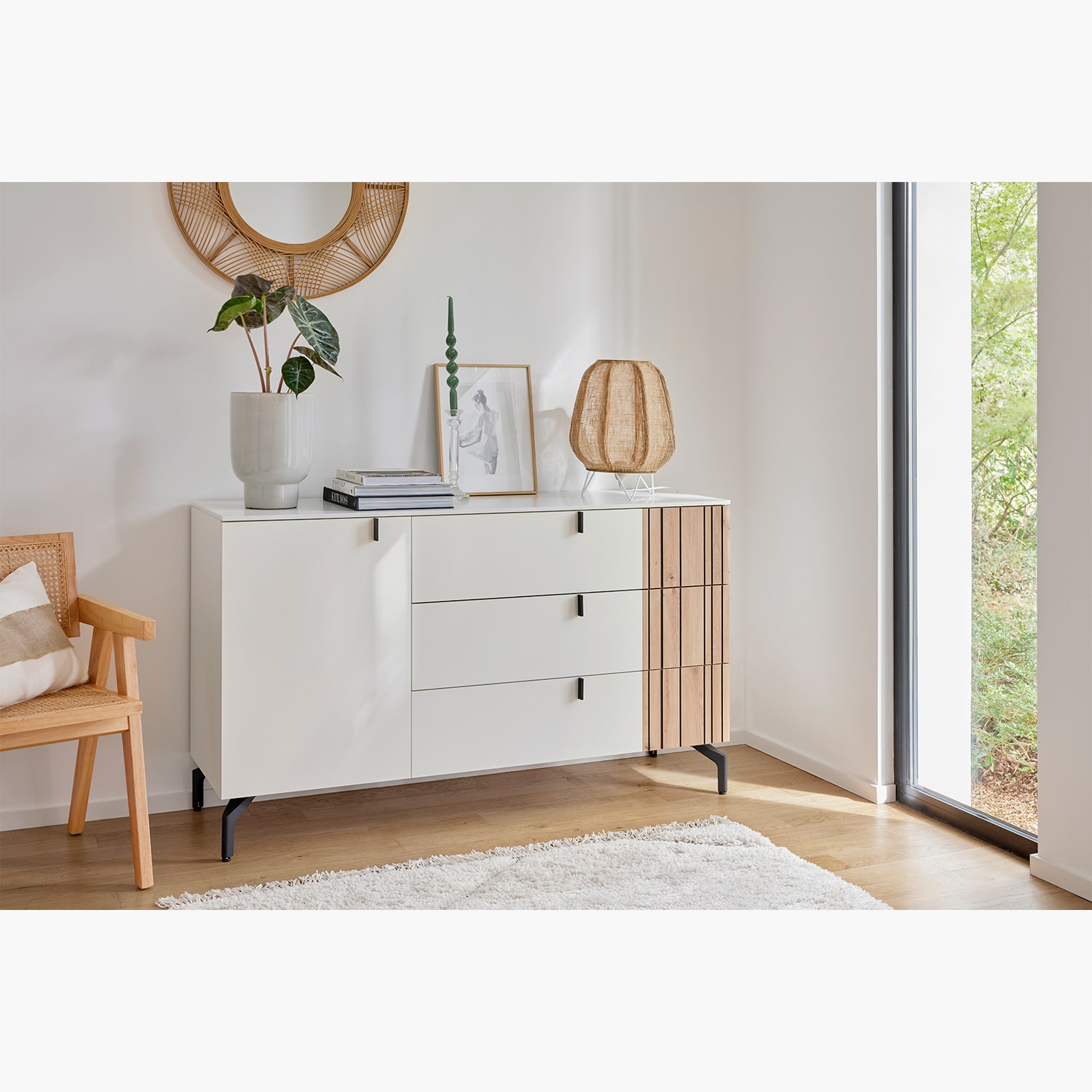 Dans la même collection : armoires portes coulissantes ou pliantes, lits, chevets, meuble combiné, commode, pantalonnière, chiffonnier.