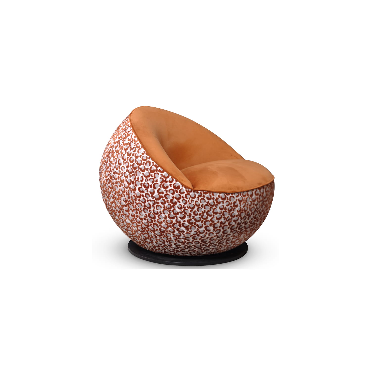 Fauteuil pivotant au design contemporain se distinguant par ses formes généreuses et arrondies, lui conférant une allure chaleureuse.