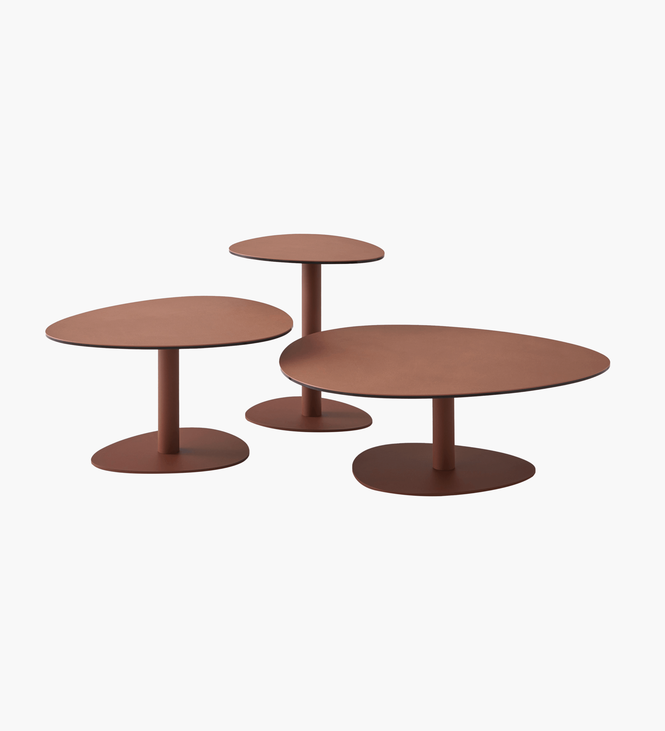 Table basse au design organique, alliant esthétique et stabilité. Déclinée en plusieurs dimensions et hauteurs, elle est utilisable seule ou en composition.