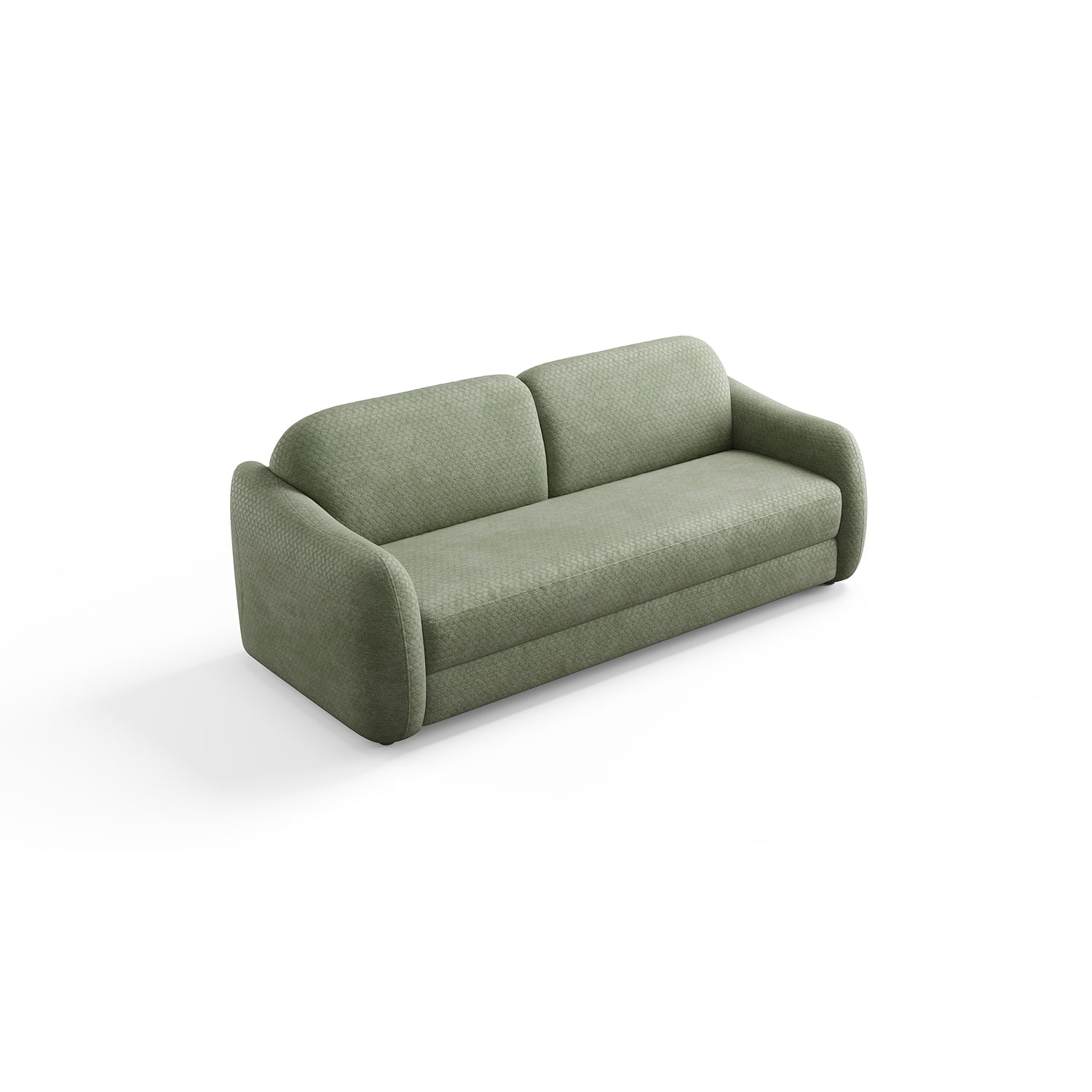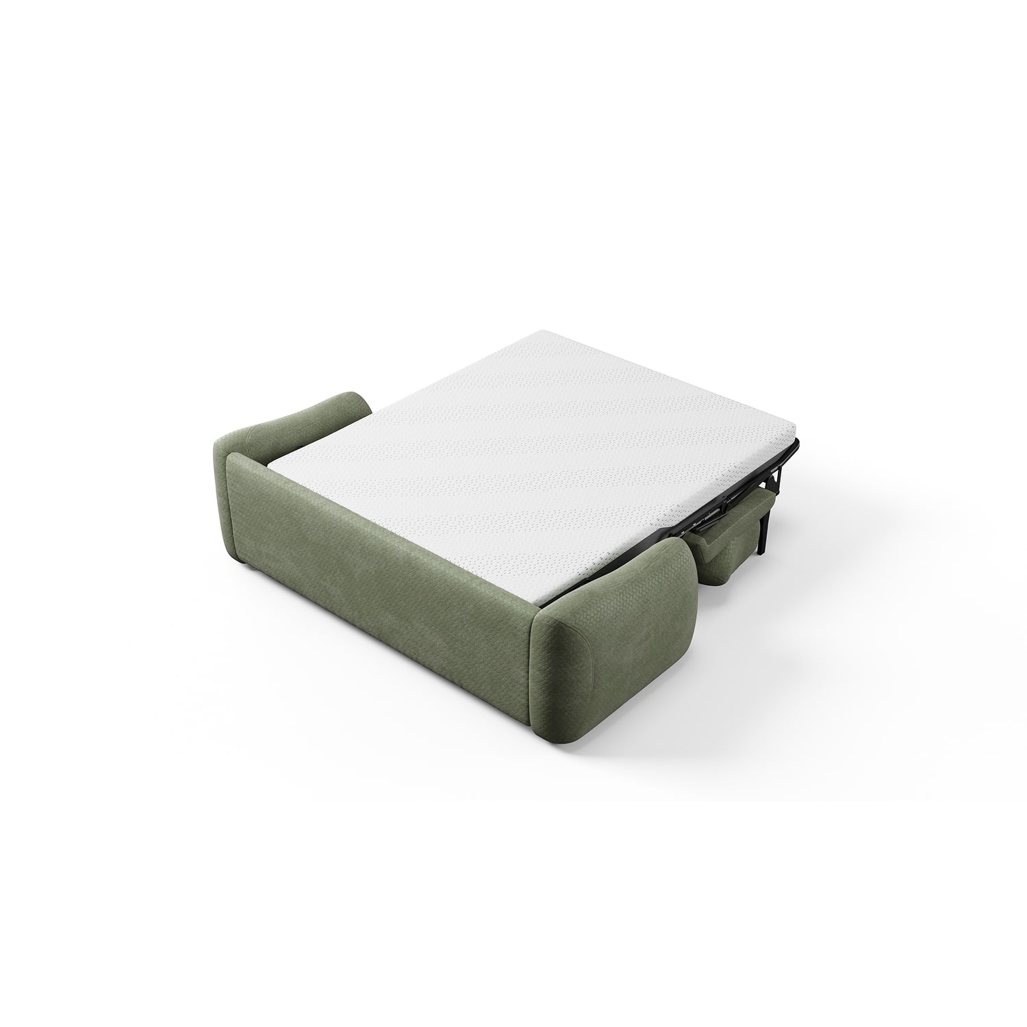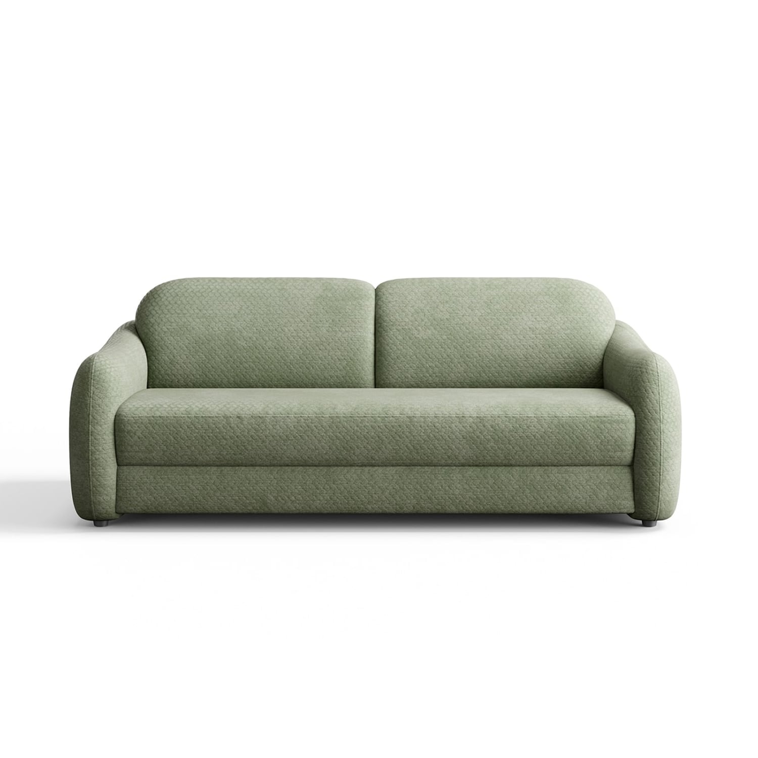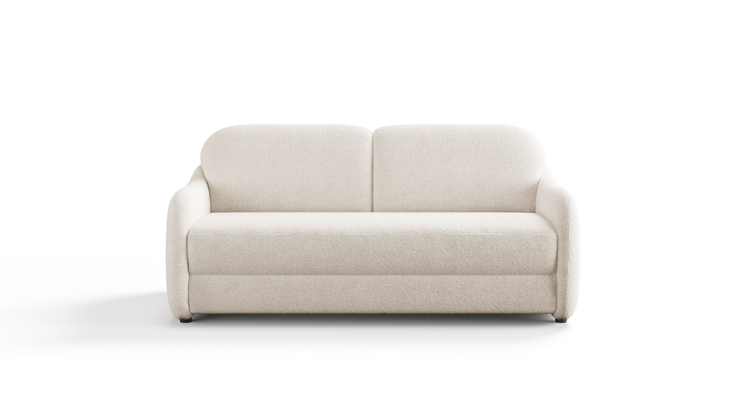 Canapé convertible au design élégant, aux formes organiques, personnalisable. Deux largeurs d’accoudoirs.