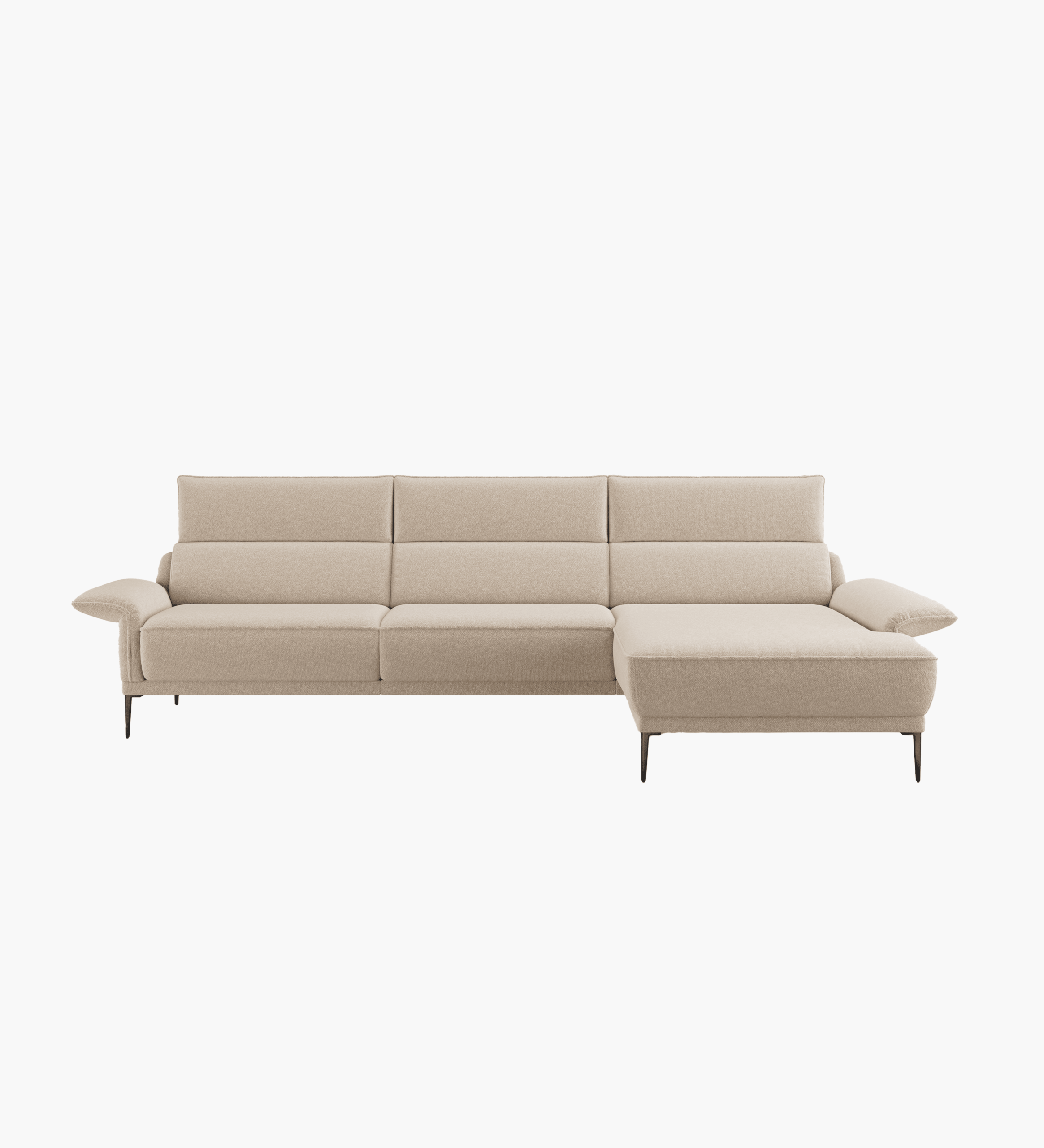 Salon sobre et chaleureux, personnalisable. Multiples configurations et dimensions. Accoudoirs réglables.