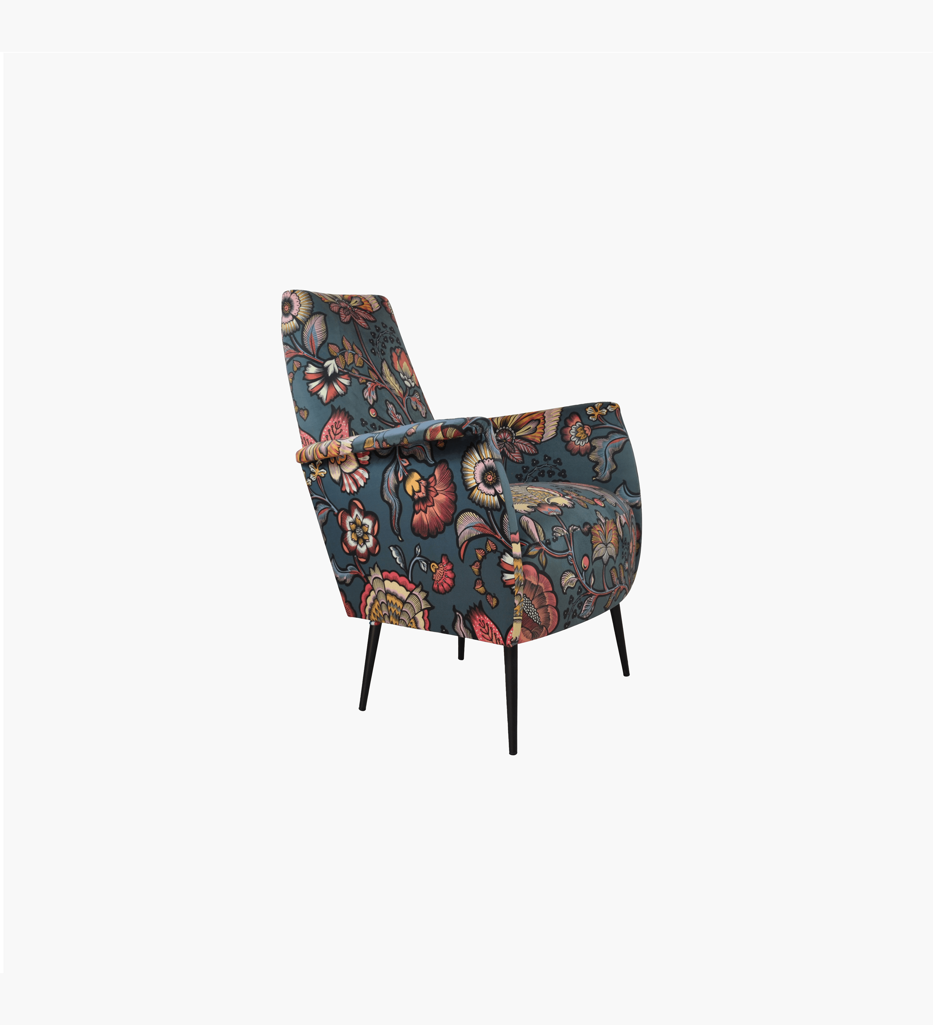 Fauteuil à la fois vintage et contemporain, élégant et confortable.